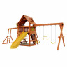 Детский городок изготовлен из северной древесины хвойных пород, обработанной безопасной декоративно-защитной пропиткой. Технология значительно увеличивает срок службы конструкций, повышает прочность древесины, защищает её от гниения и грибков. Обработка придаёт дереву приятный оттенок, проявляет и подчёркивает его текстуру. Используемая пропитка не содержит токсичных компонентов, экологична и абсолютно безопасна для ребёнка. Состав прошёл санитарно-эпидемиологическую экспертизу в Центре гигиены и эпидемиологии в г. Великому Новгороду.
