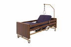 Медицинская кровать Интегра Электро для домашнего ухода, снабжённая электроприводными регулировками положения четырёхсекционного ложа и оригинально реализованной функцией кардио-кресло, представляющей из себя не только статичное полулежачее положение для бодрствования и терапии кардио-заболеваний, но и независимо выдвигающуюся из торца кровати, оборудованную электрическим санитарным устройством каталку для перемещения больного, с электроприводной регулировкой наклона спинки*.